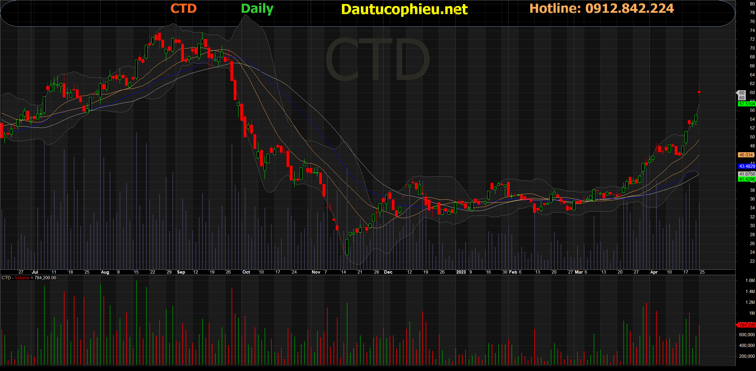 Đồ thị cổ phiếu CTD phiên giao dịch ngày 25/04/2023. Nguồn: AmiBroker
