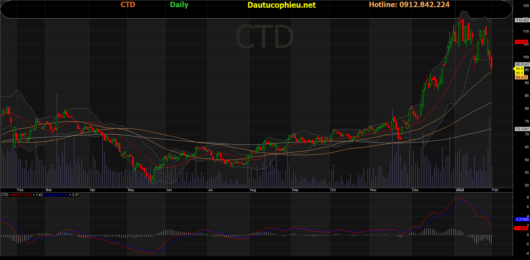 Đồ thị cổ phiếu CTD phiên giao dịch ngày 07/02/2022. Nguồn: AmiBroker