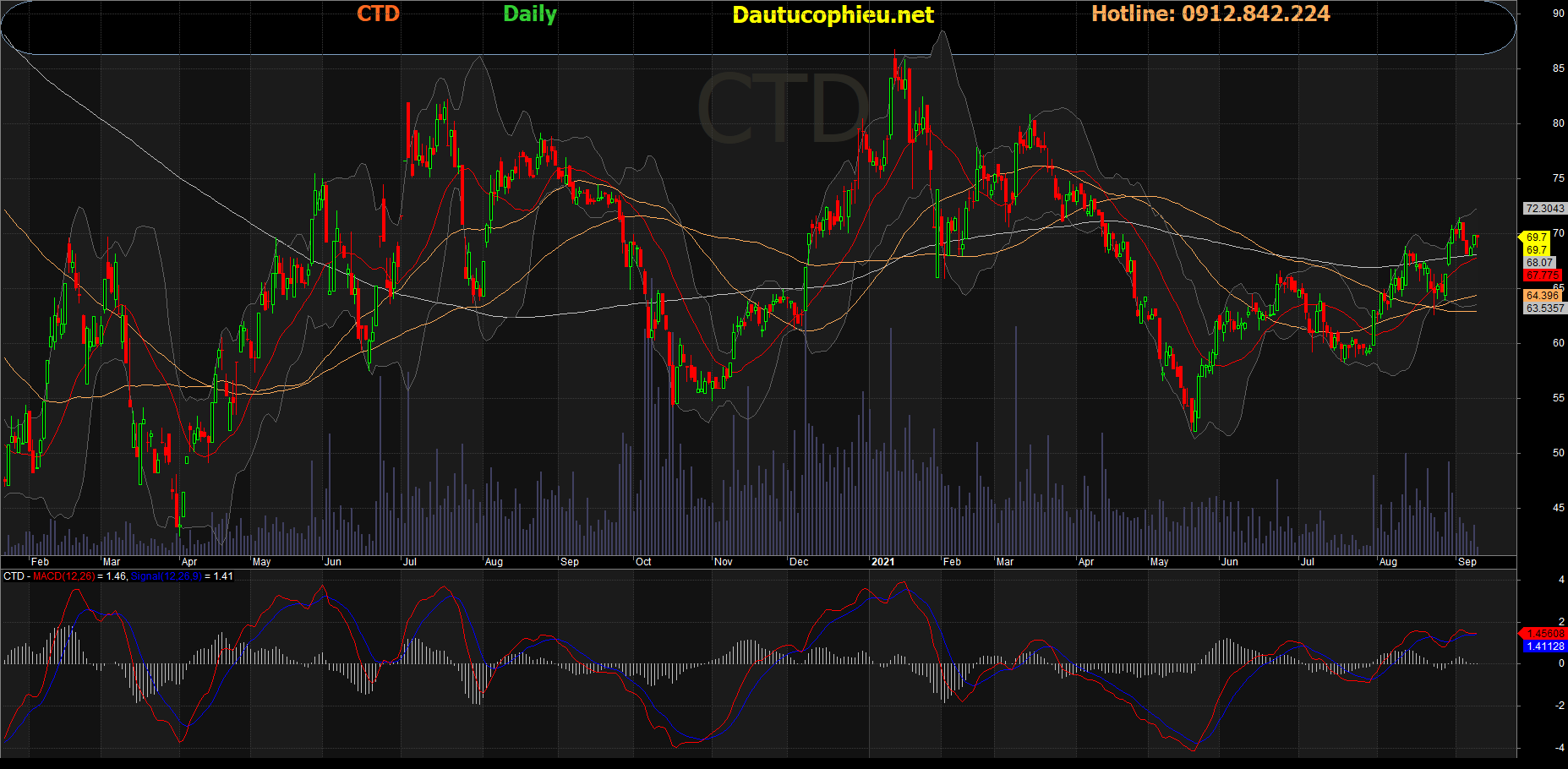 Đồ thị cổ phiếu CTD phiên giao dịch ngày 13/09/2021. Nguồn: AmiBroker