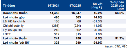 Bảng 1: KQKD Q3 NĐTC 2025, CTD
