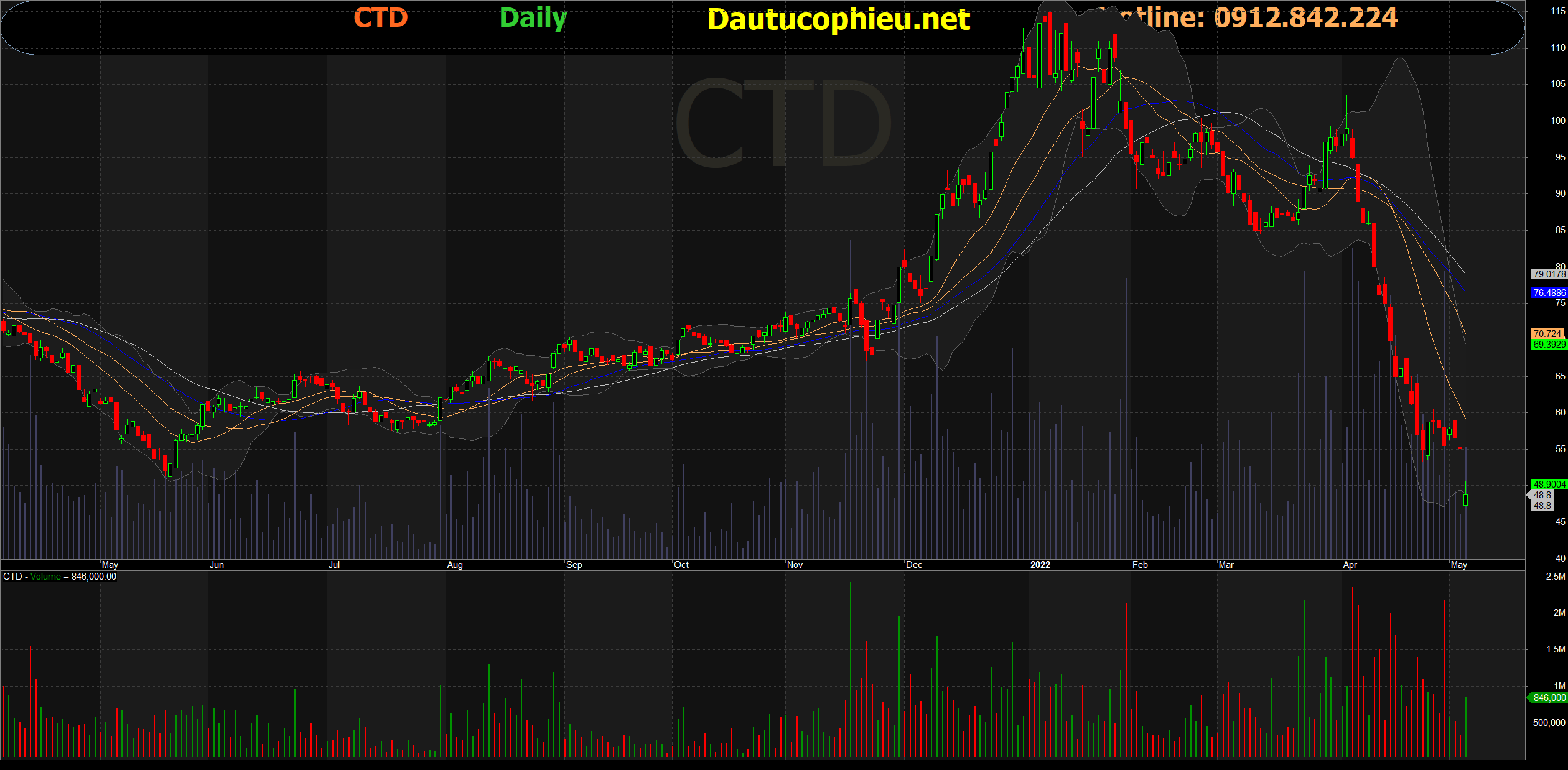 Đồ thị cổ phiếu CTD phiên giao dịch ngày 10/05/2022. Nguồn: AmiBroker