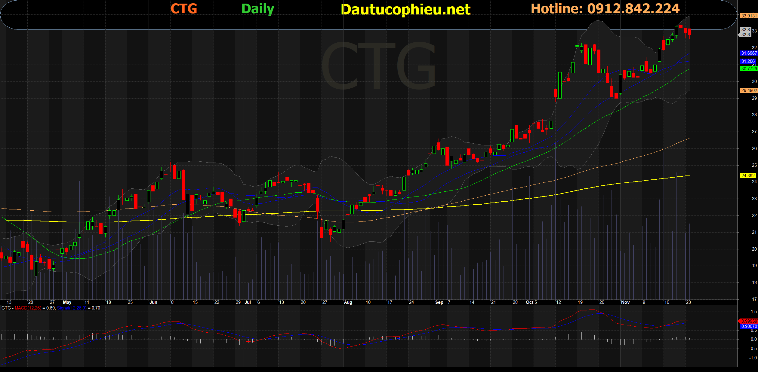 Đồ thị cổ phiếu CTG phiên giao dịch ngày 24/11/2020. Nguồn: AmiBroker