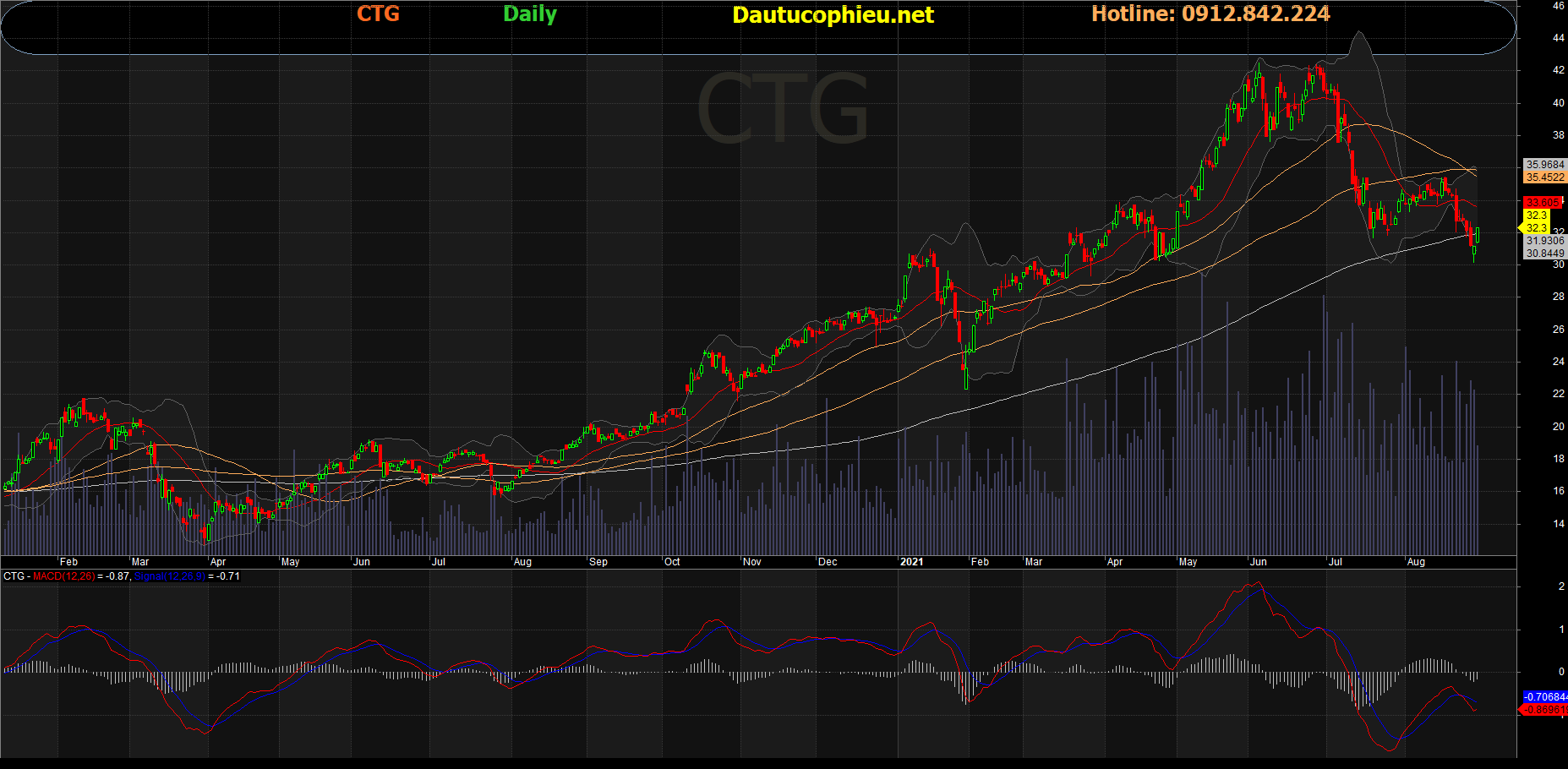 Đồ thị cổ phiếu CTG phiên giao dịch ngày 30/08/2021. Nguồn: AmiBroker