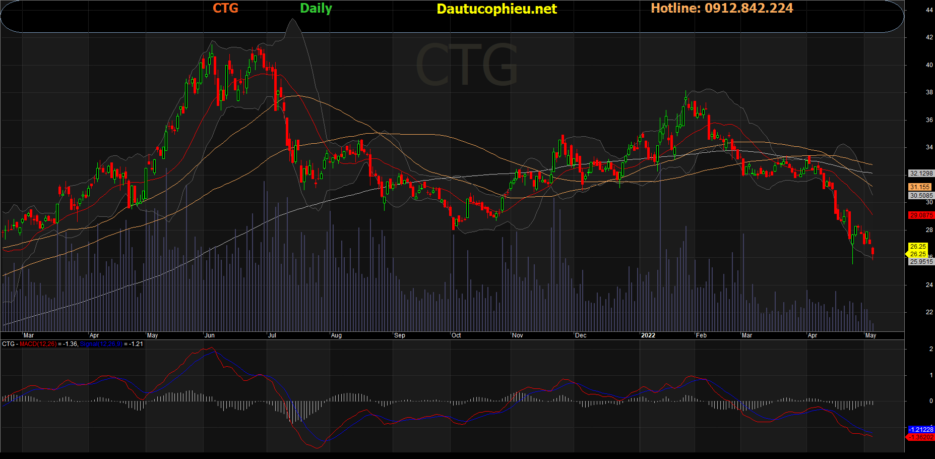 Đồ thị cổ phiếu CTG phiên giao dịch ngày 09/05/2022. Nguồn: AmiBroker