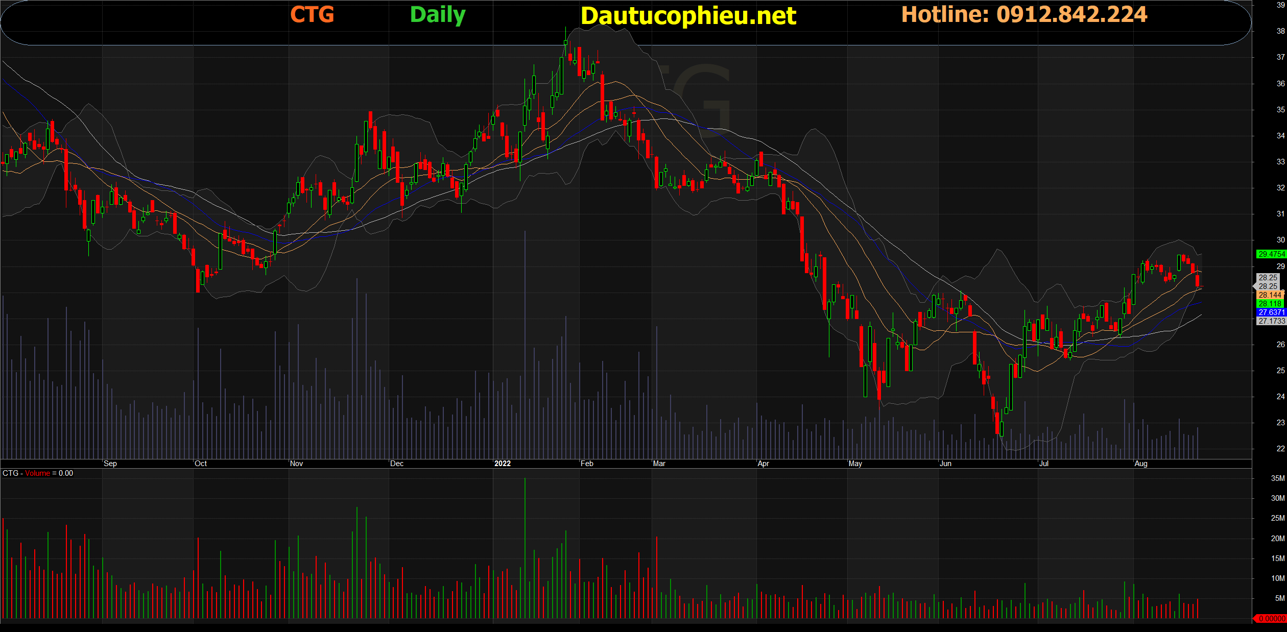 Đồ thị cổ phiếu CTG phiên giao dịch ngày 22/08/2022. Nguồn: AmiBroker