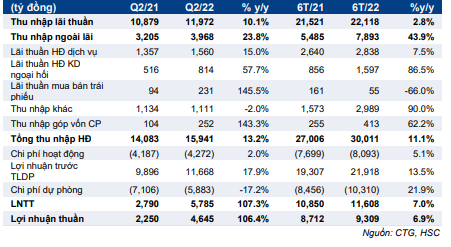 Bảng 1: KQKD Q2/2022 và 6T/2022, CTG