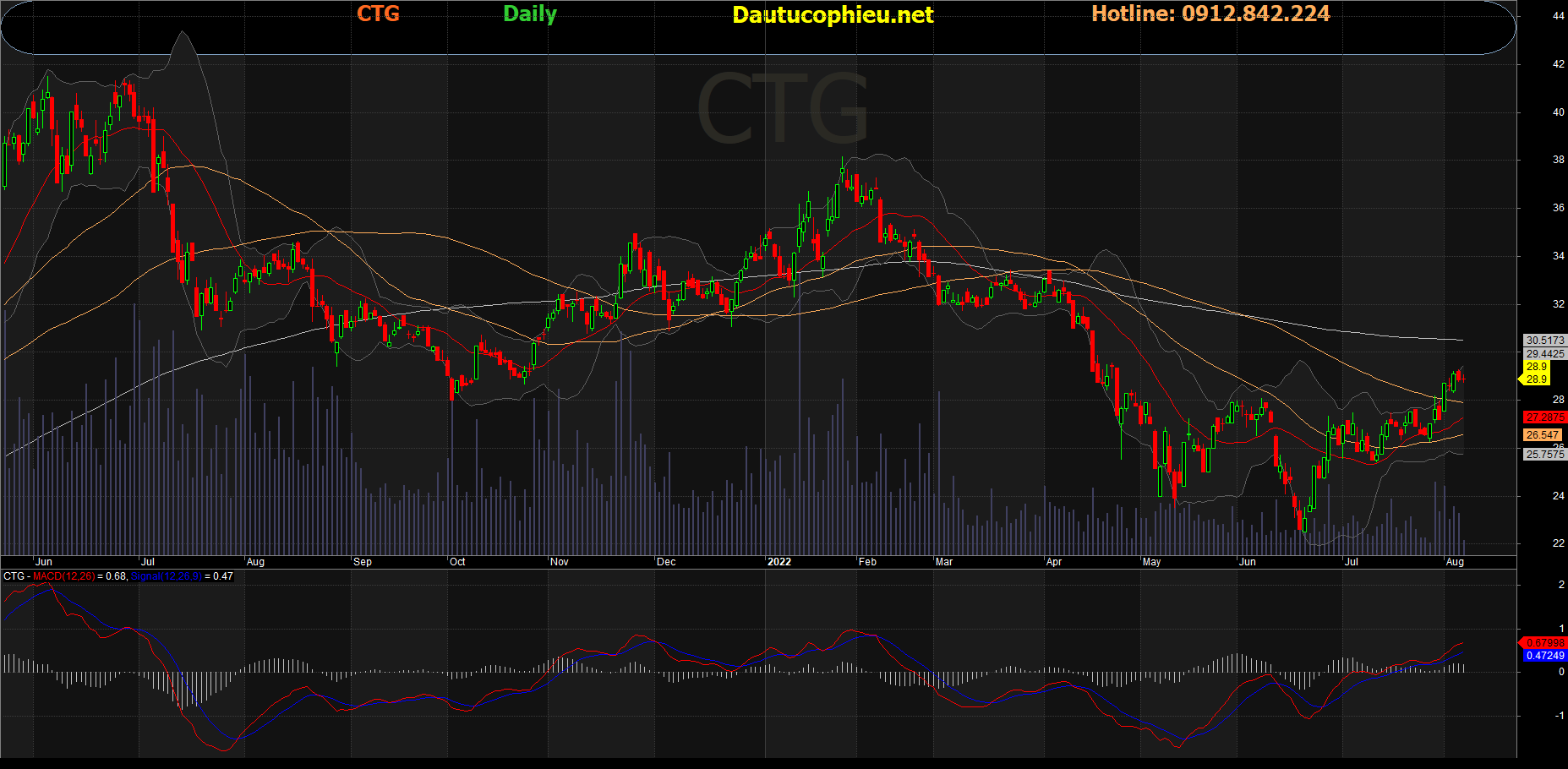 Đồ thị cổ phiếu CTG phiên giao dịch ngày 05/08/2022. Nguồn: AmiBroker