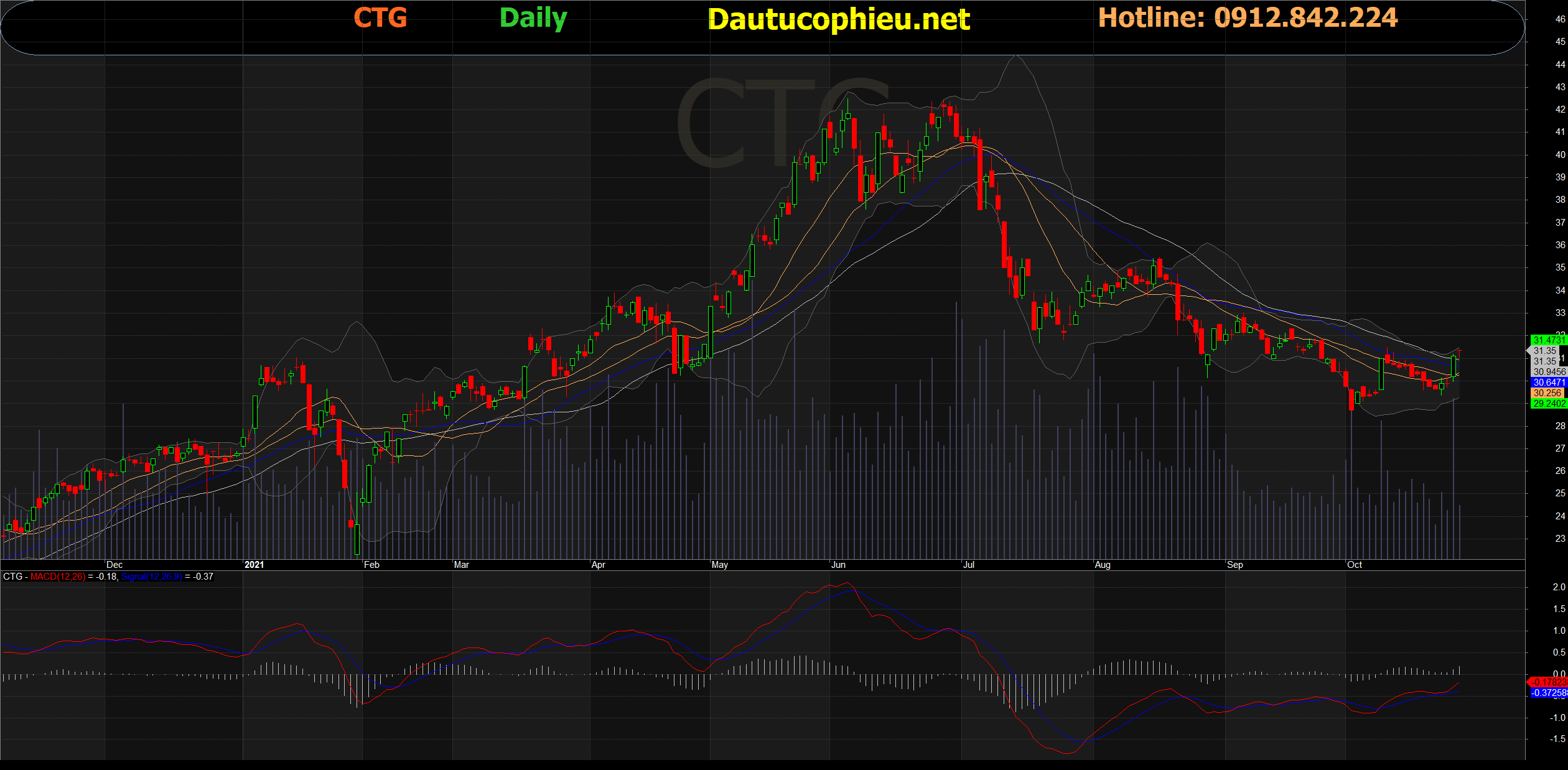 Đồ thị cổ phiếu CTG phiên giao dịch ngày 28/10/2021. Nguồn: AmiBroker