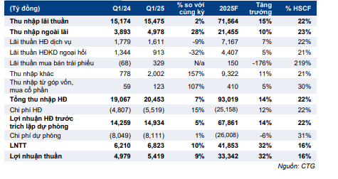 Bảng 1: KQKD Q1/2025, CTG