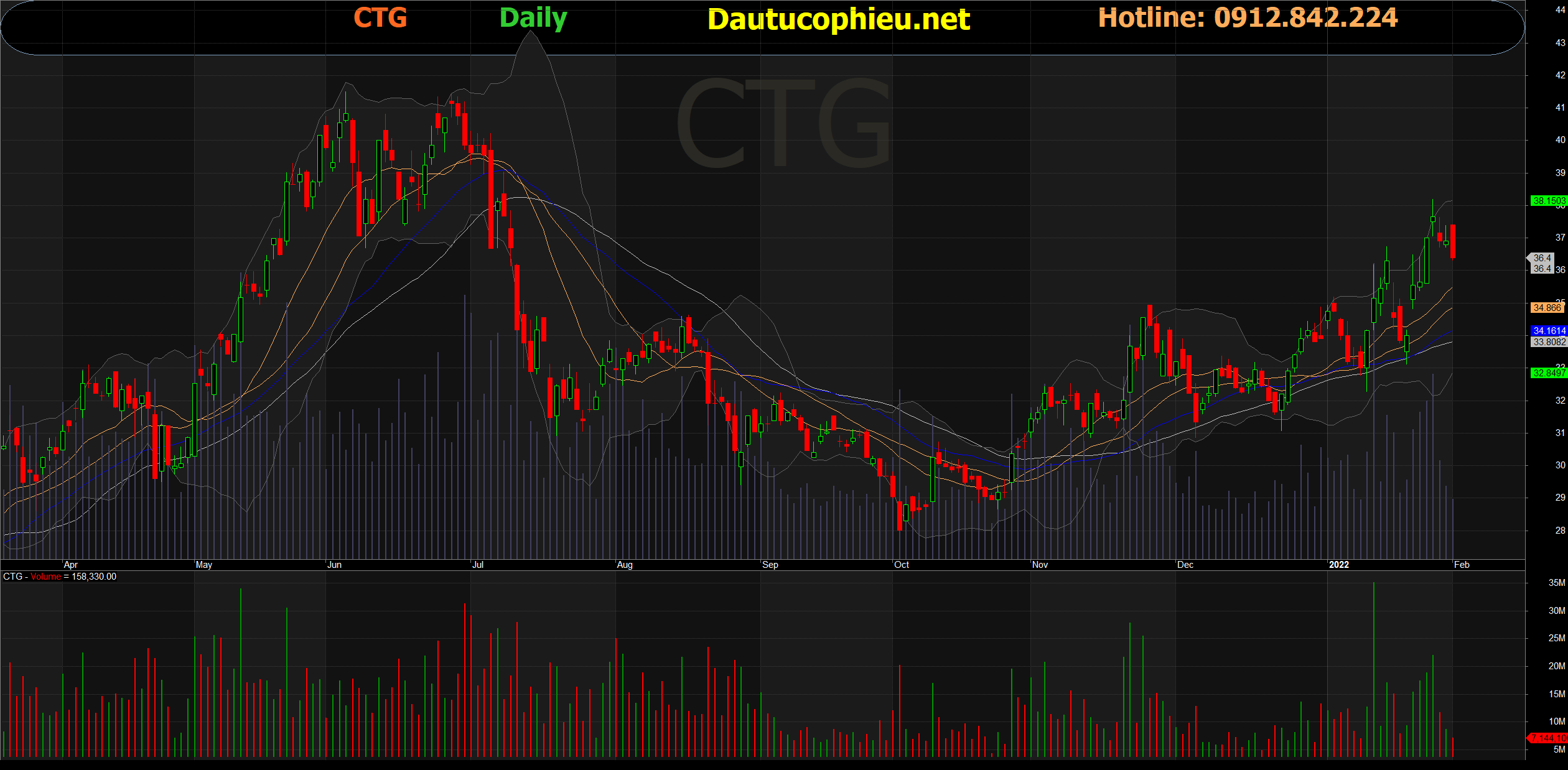 Đồ thị cổ phiếu CTG phiên giao dịch ngày 07/02/2022. Nguồn: AmiBroker