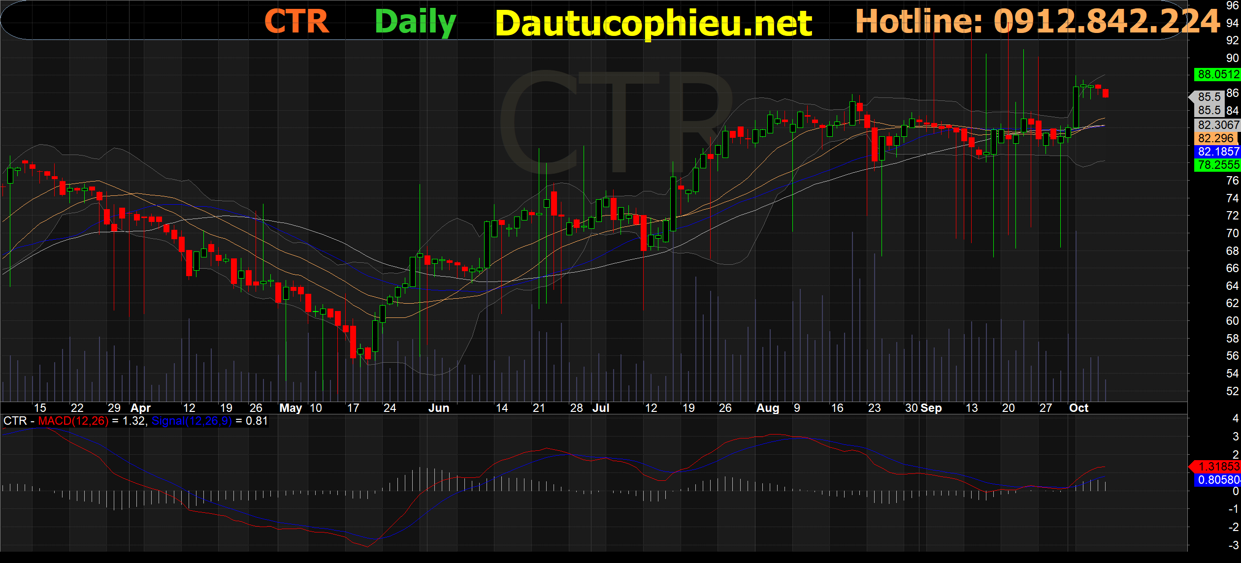 Đồ thị cổ phiếu CTR phiên giao dịch ngày 08/10/2021. Nguồn: AmiBroker