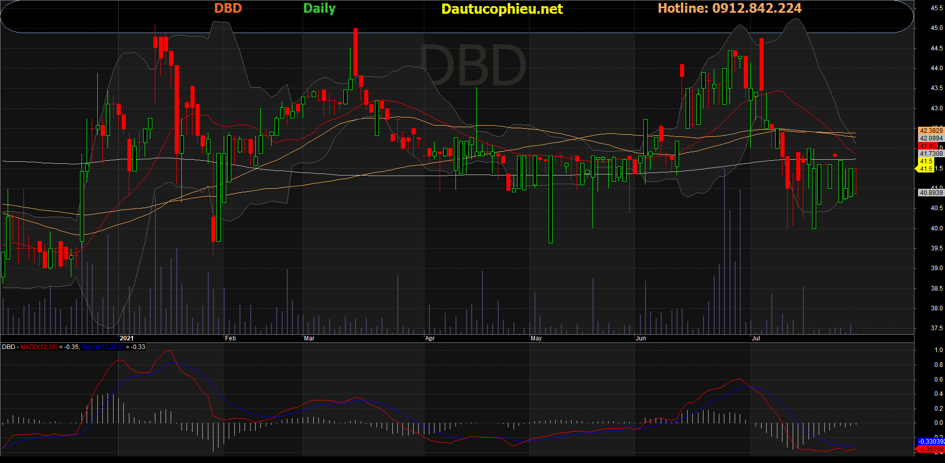 Đồ thị cổ phiếu DBD phiên giao dịch ngày 29/07/2021. Nguồn: AmiBroker