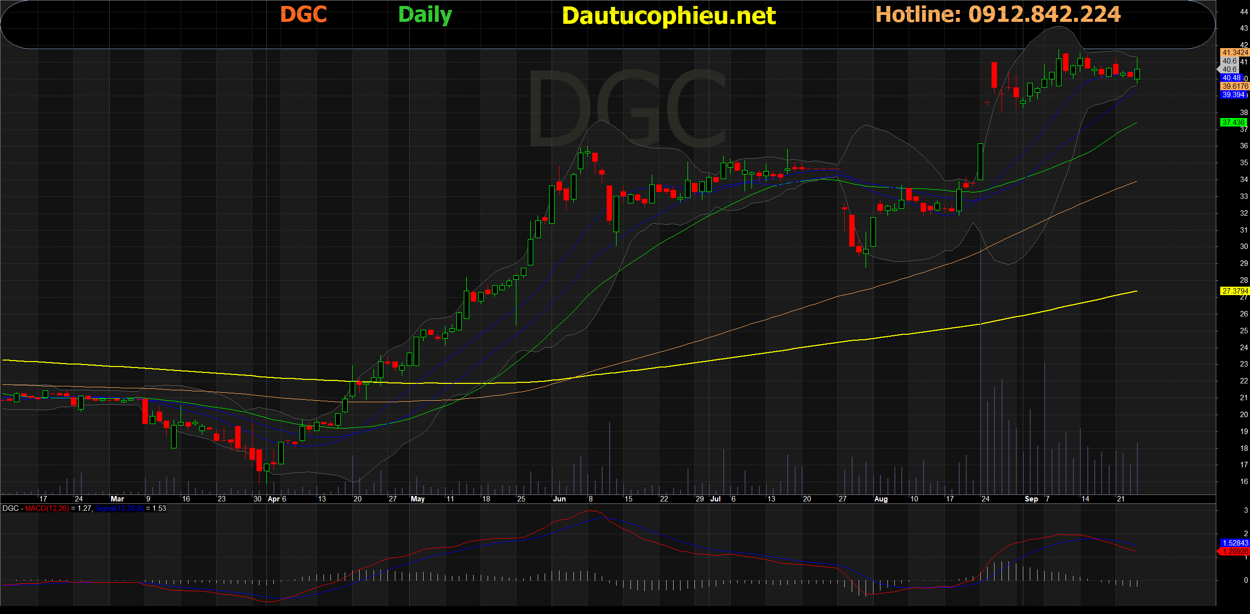 Đồ thị cổ phiếu DGC phiên giao dịch ngày 24/09/2020. Nguồn: AmiBroker