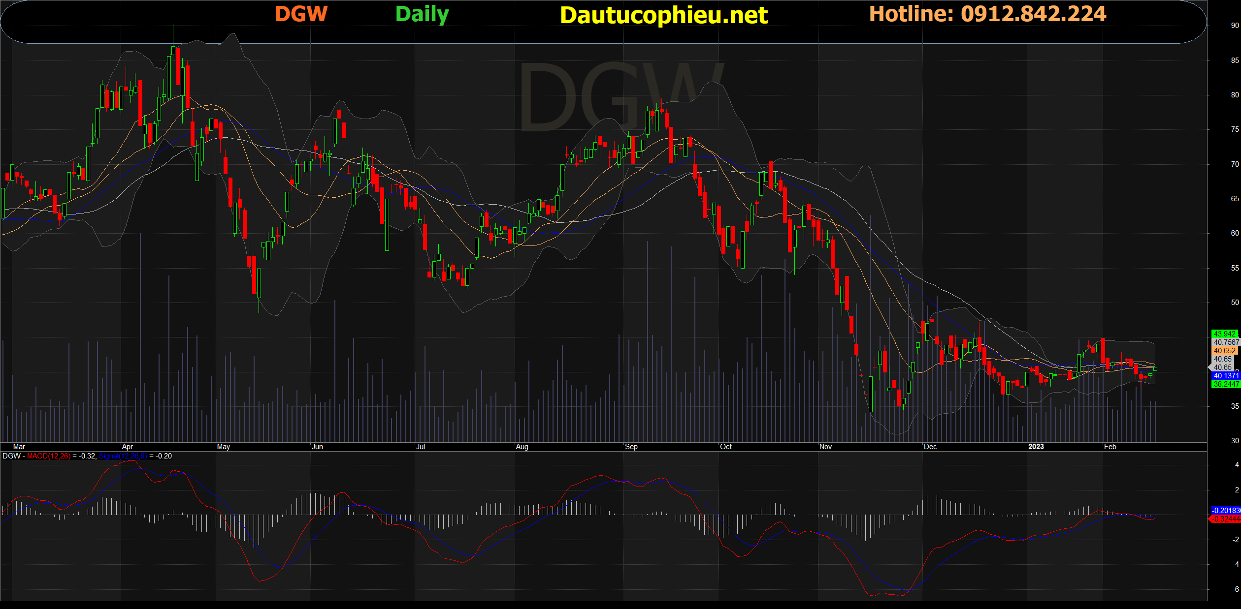Đồ thị cổ phiếu DGW phiên giao dịch ngày 16/02/2023. Nguồn: AmiBroker