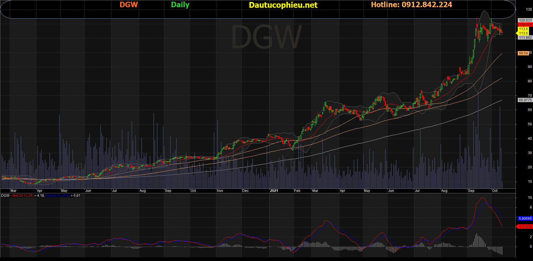 Đồ thị cổ phiếu DGW phiên giao dịch ngày 14/10/2021. Nguồn: AmiBroker