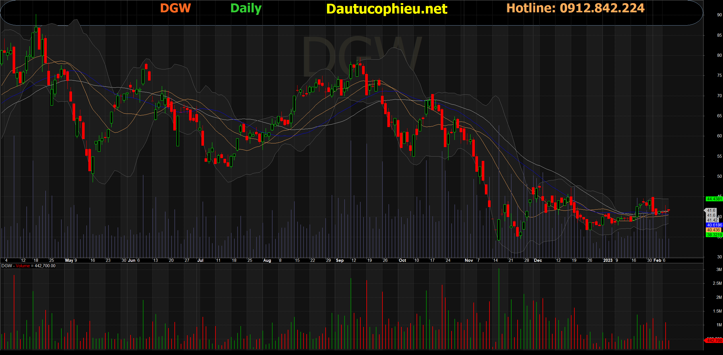 Đồ thị cổ phiếu DGW phiên giao dịch ngày 08/02/2023. Nguồn: AmiBroker