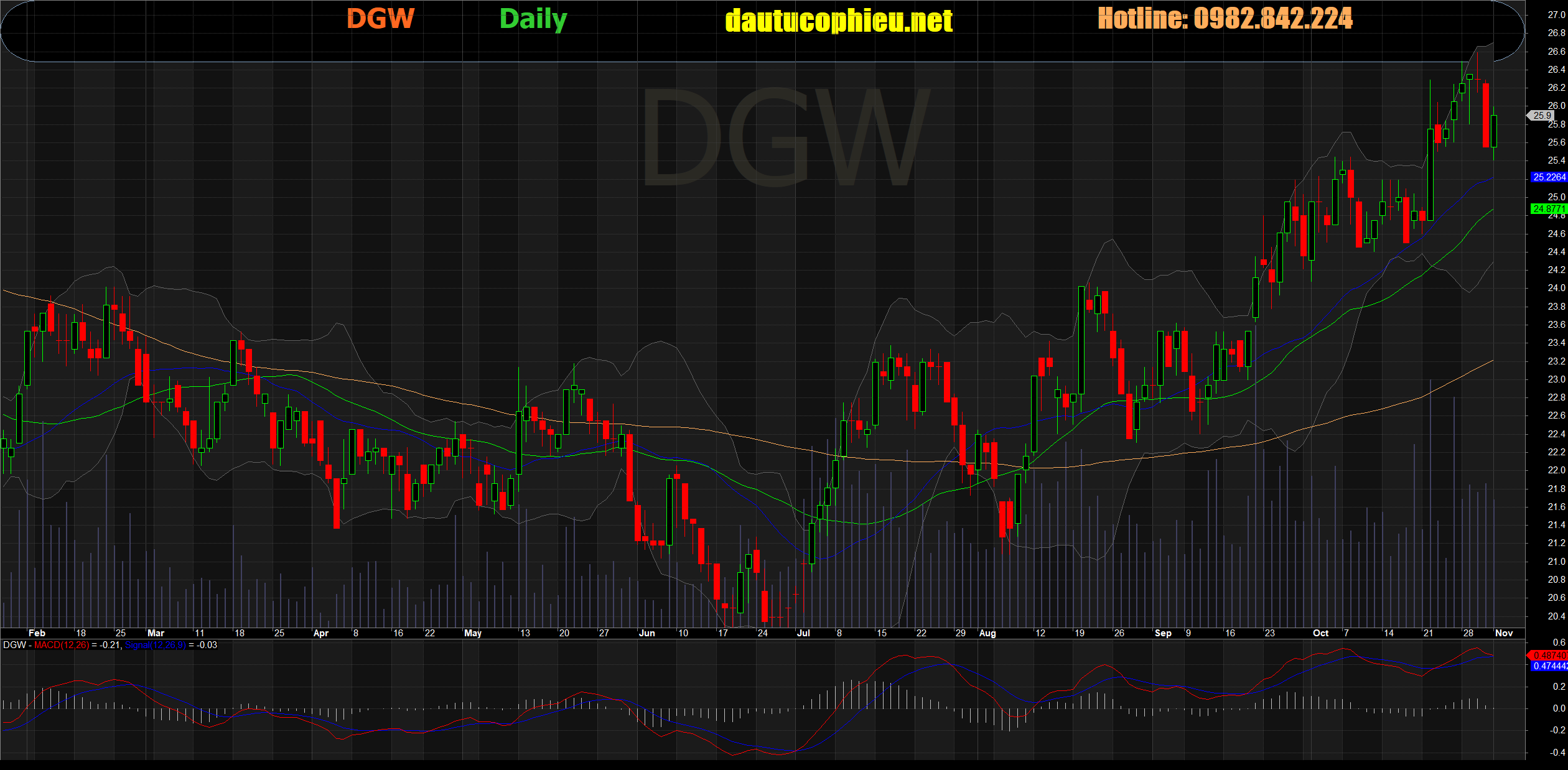 Đồ thị cổ phiếu DGW phiên giao dịch ngày 01/11/2019. Nguồn: AmiBroker.
