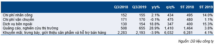 (d) KQKD mảng hàng tiêu dùng ghi nhận mức tăng trưởng mạnh nhưng khó hoàn thành kế hoạch 2019. DT mảng này trong 9T2019 ghi nhận 182 tỷ đồng (+243% YoY), nâng tỷ trọng cơ cấu trong doanh thu từ mức 1.2% 9T2018 lên mức 3%.