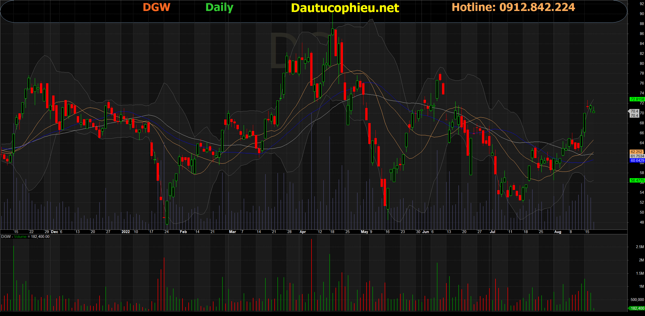 Đồ thị cổ phiếu DGW phiên giao dịch ngày 18/08/2022. Nguồn: AmiBroker
