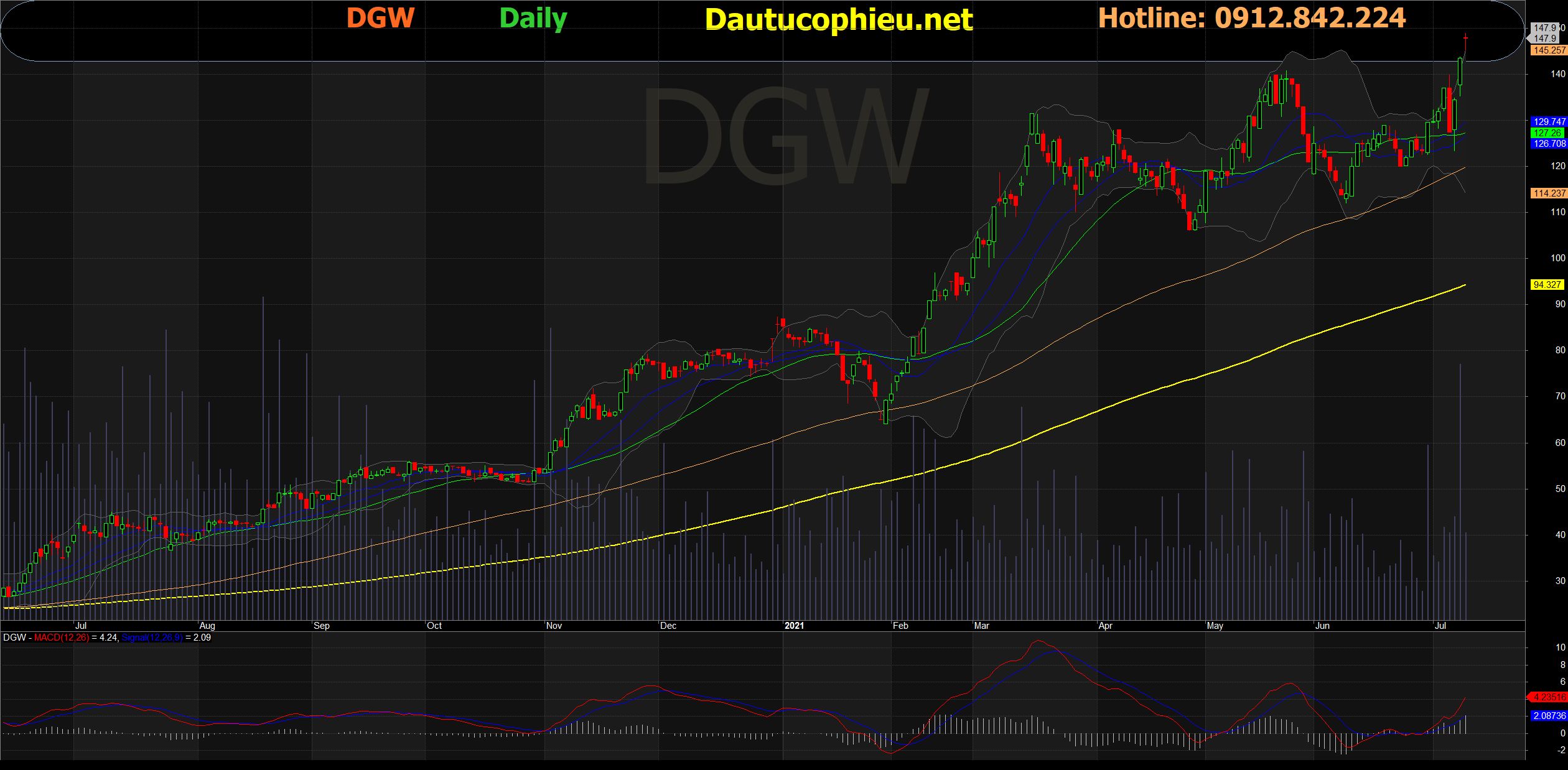 Đồ thị cổ phiếu DGW phiên giao dịch ngày 09/07/2021. Nguồn: AmiBroker