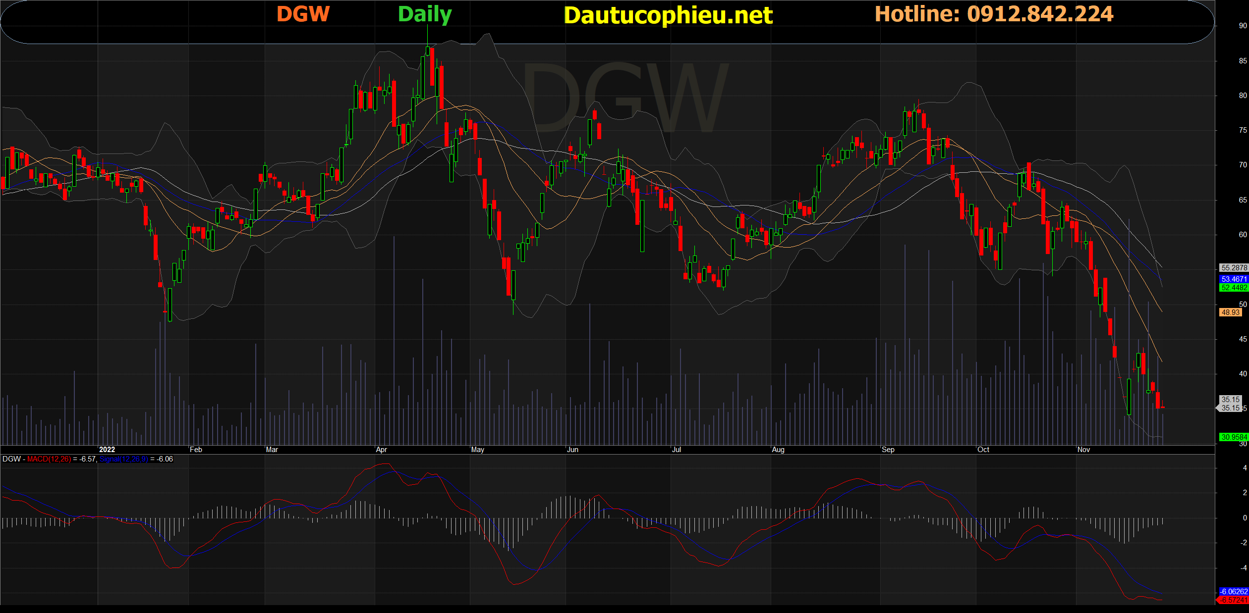 Đồ thị cổ phiếu DGW phiên giao dịch ngày 25/11/2022. Nguồn: AmiBroker