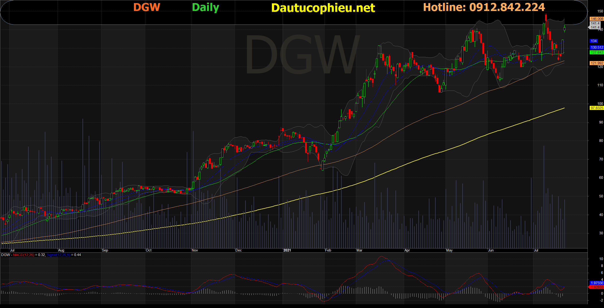 Đồ thị cổ phiếu DGW phiên giao dịch ngày 22/07/2021. Nguồn: AmiBroker