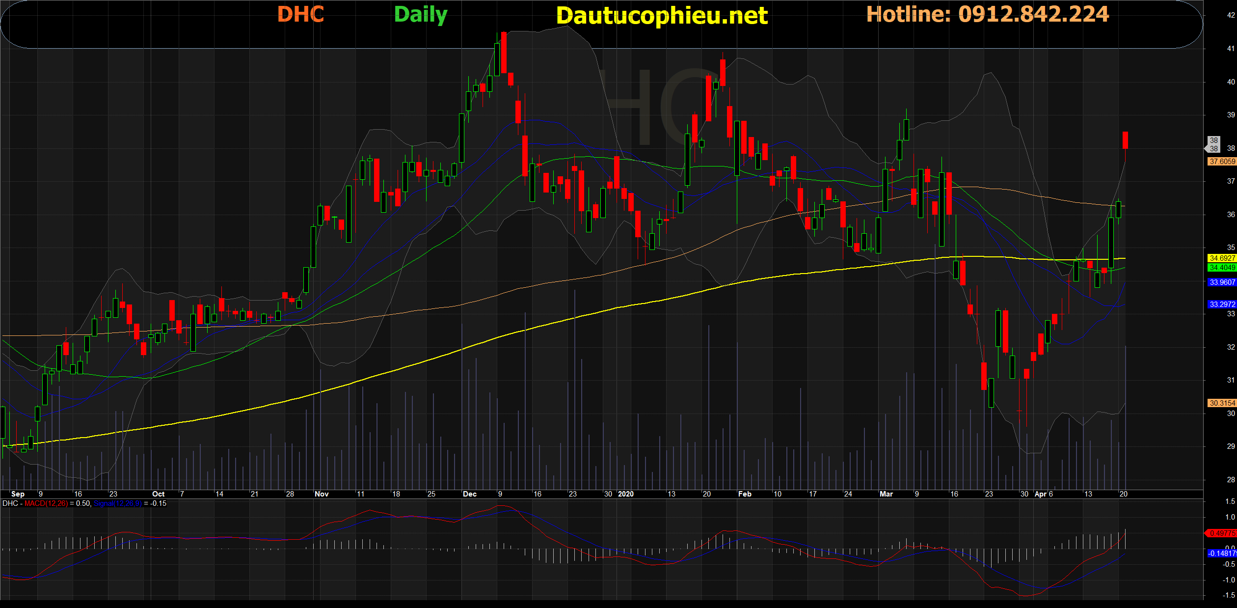 Đồ thị cổ phiếu DHC phiên giao dịch ngày 21/04/2020. Nguồn: AmiBroker