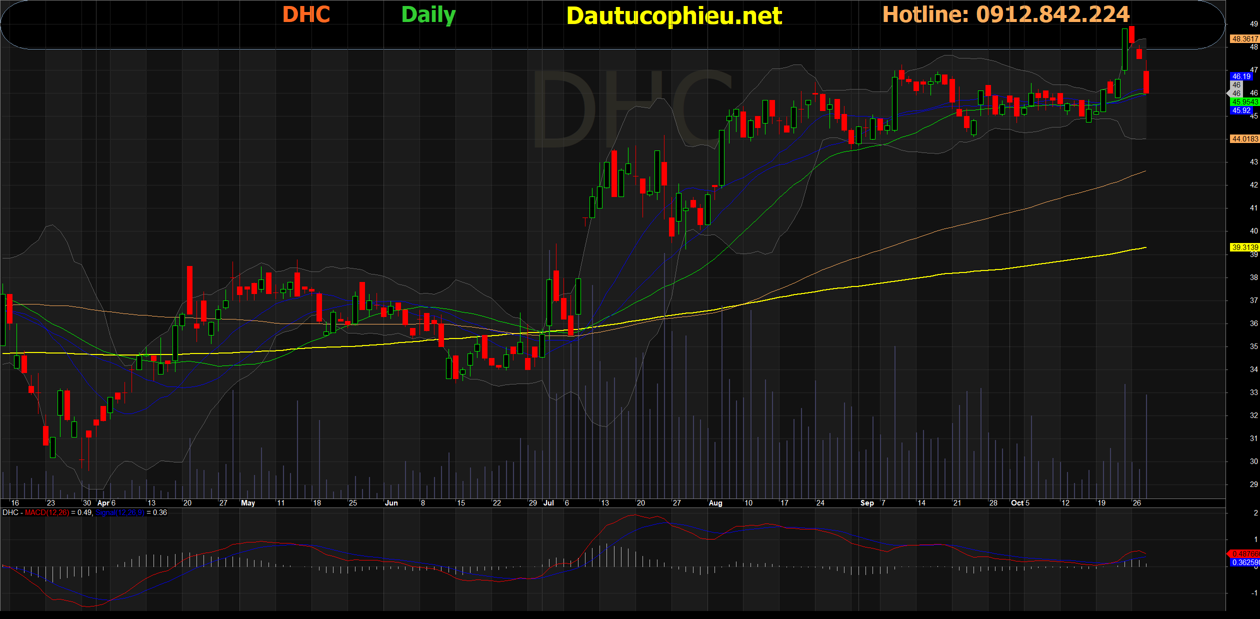 Đồ thị cổ phiếu DHC phiên giao dịch ngày 28/10/2020. Nguồn: AmiBroker
