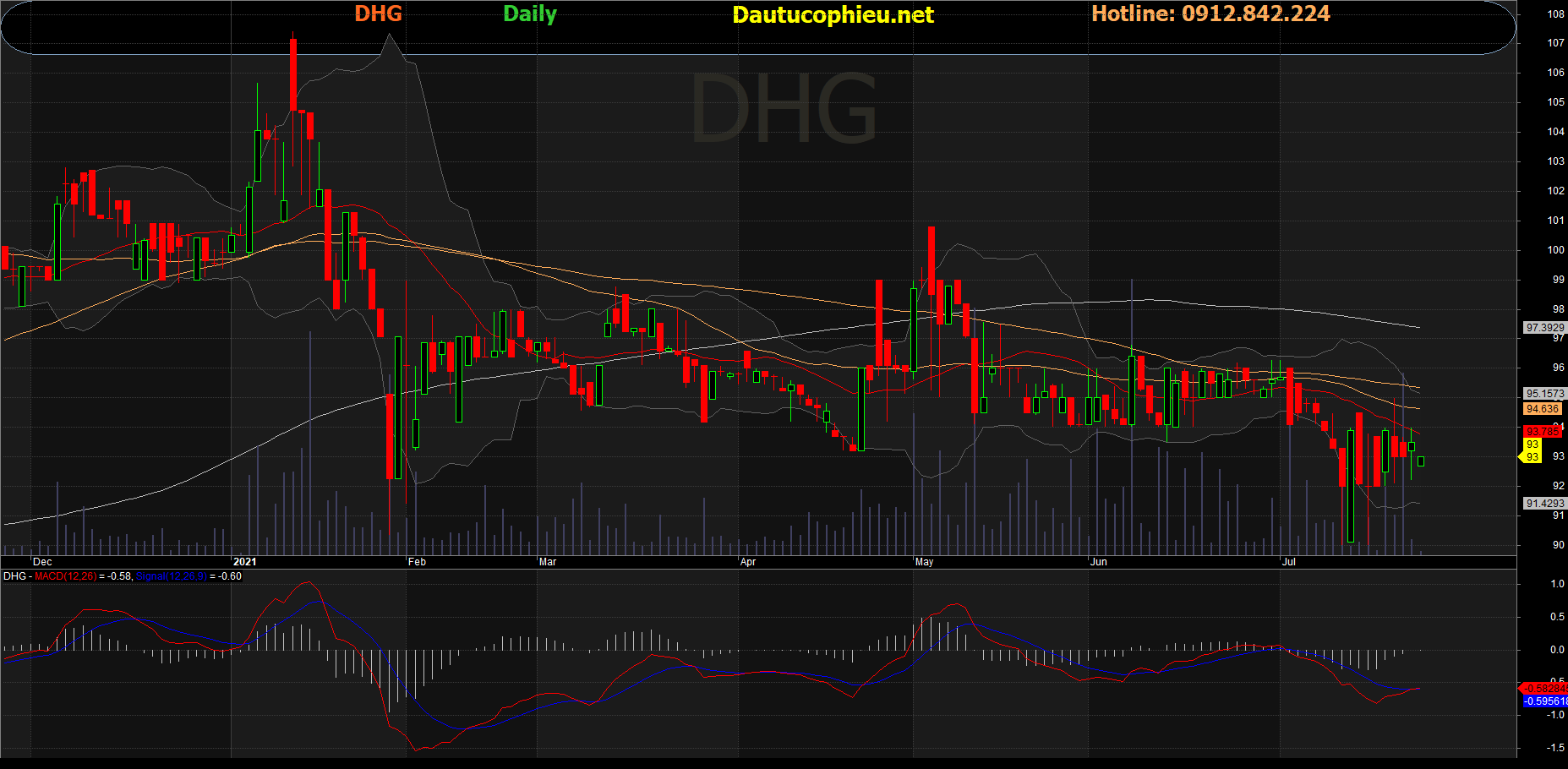 Đồ thị cổ phiếu DHG phiên giao dịch ngày 23/07/2021. Nguồn: AmiBroker