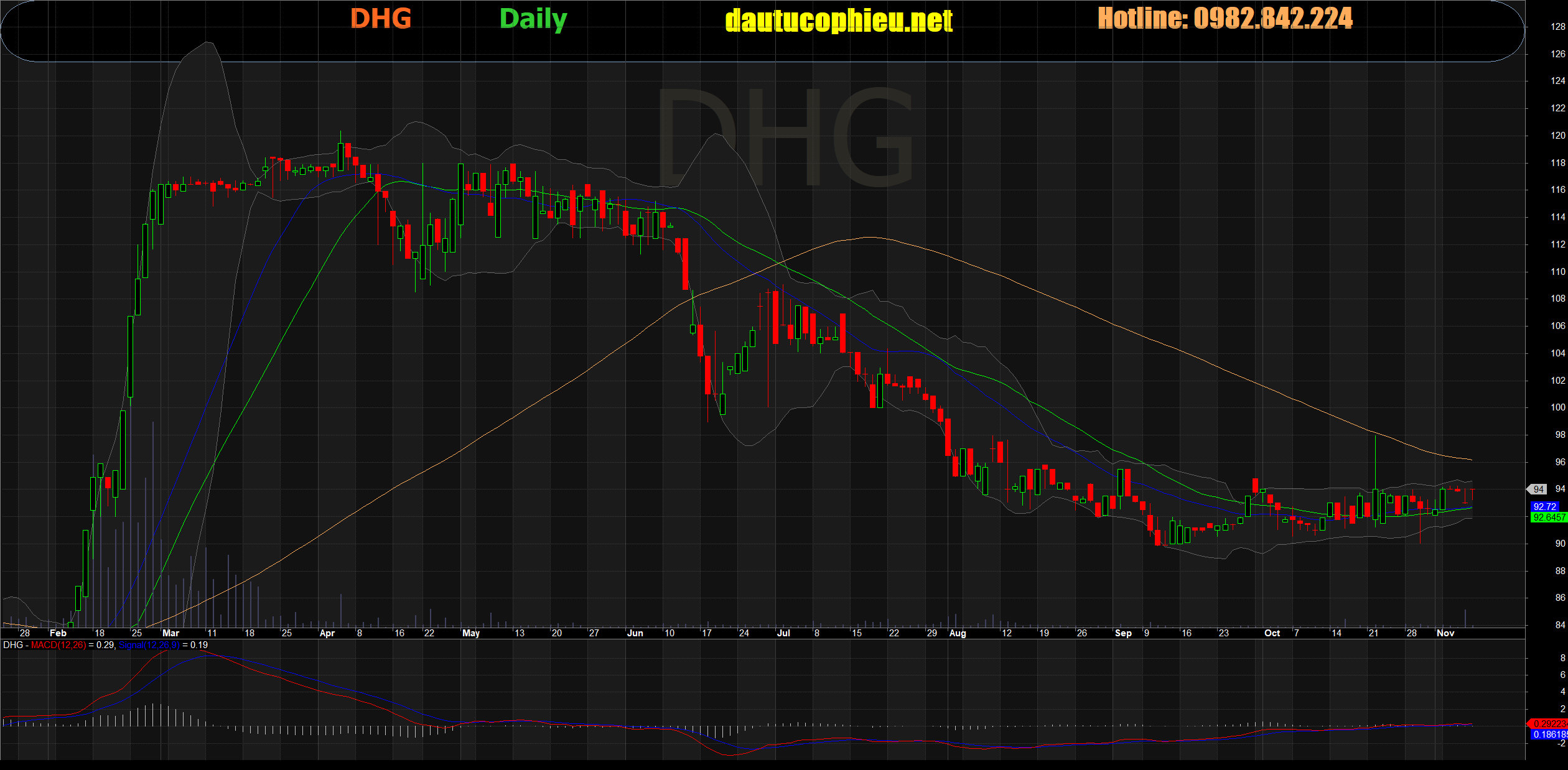 Đồ thị cổ phiếu DHG phiên giao dịch ngày 08/11/2019. Nguồn: AmiBroker.