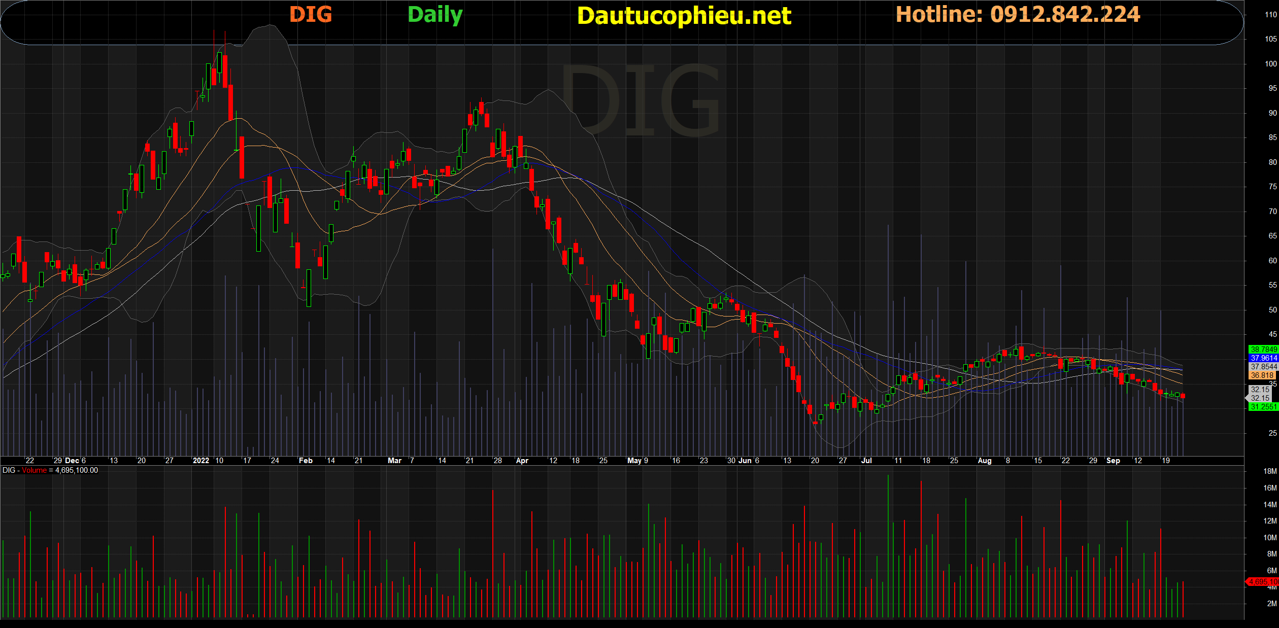 Đồ thị cổ phiếu DIG phiên giao dịch ngày 22/09/2022. Nguồn: AmiBroker