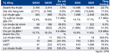 Bảng 1: KQKD Q4/2025 và cả năm 2025, DPM