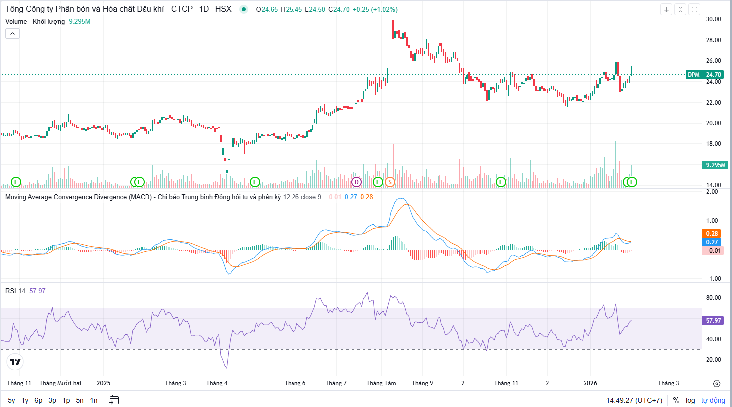 Đồ thị cổ phiếu DPM phiên giao dịch ngày 03/02/2026