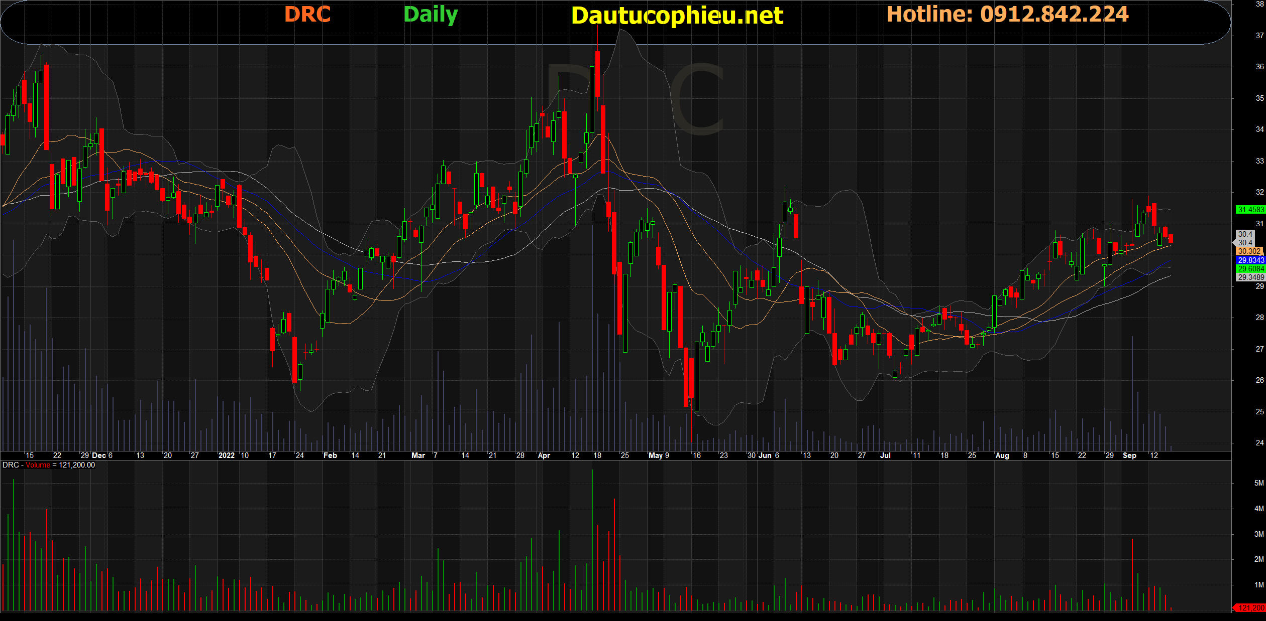 Đồ thị cổ phiếu DRC phiên giao dịch ngày 16/09/2022. Nguồn: AmiBroker
