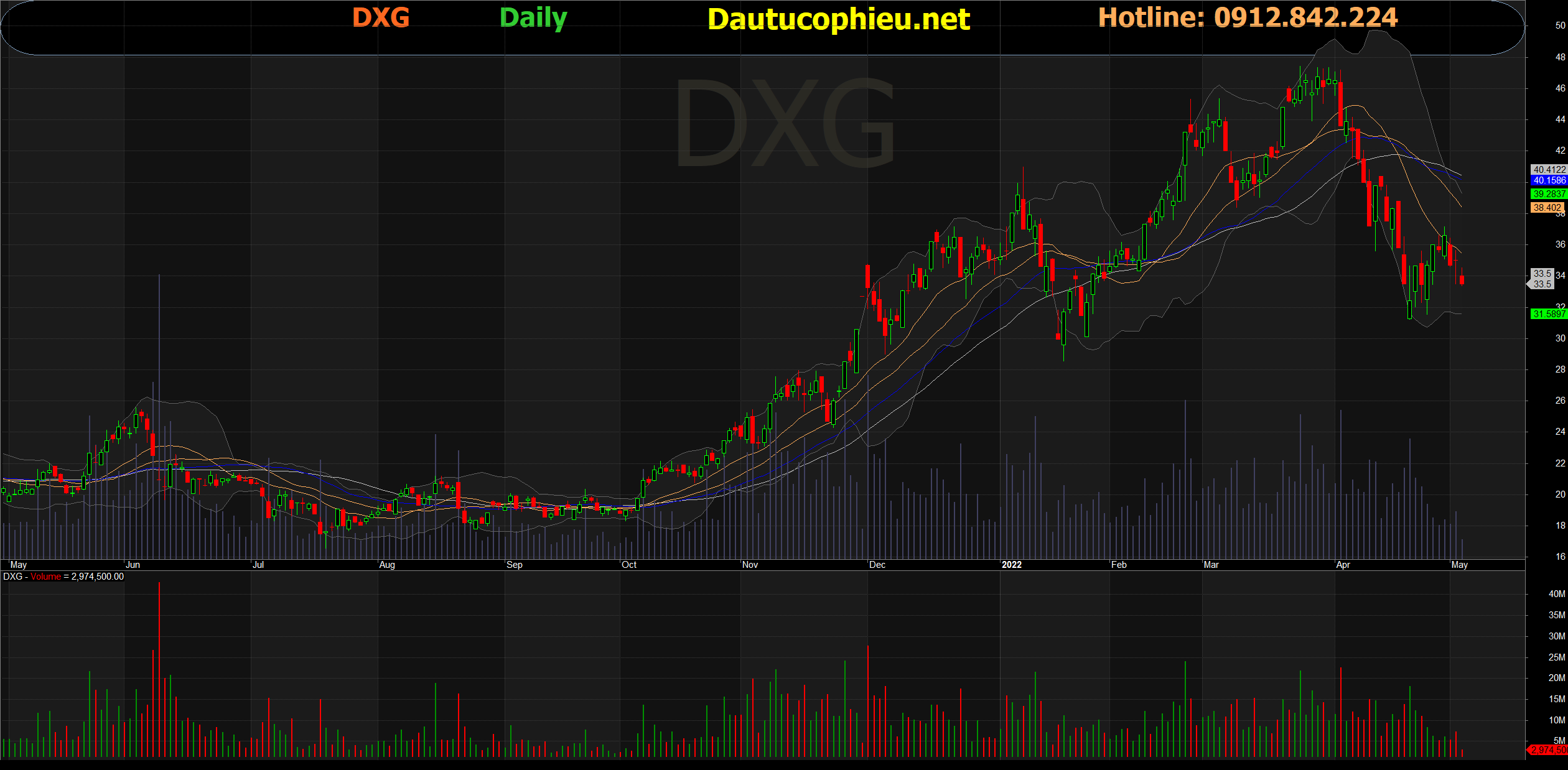 Đồ thị cổ phiếu DXG phiên giao dịch ngày 06/05/2022. Nguồn: AmiBroker