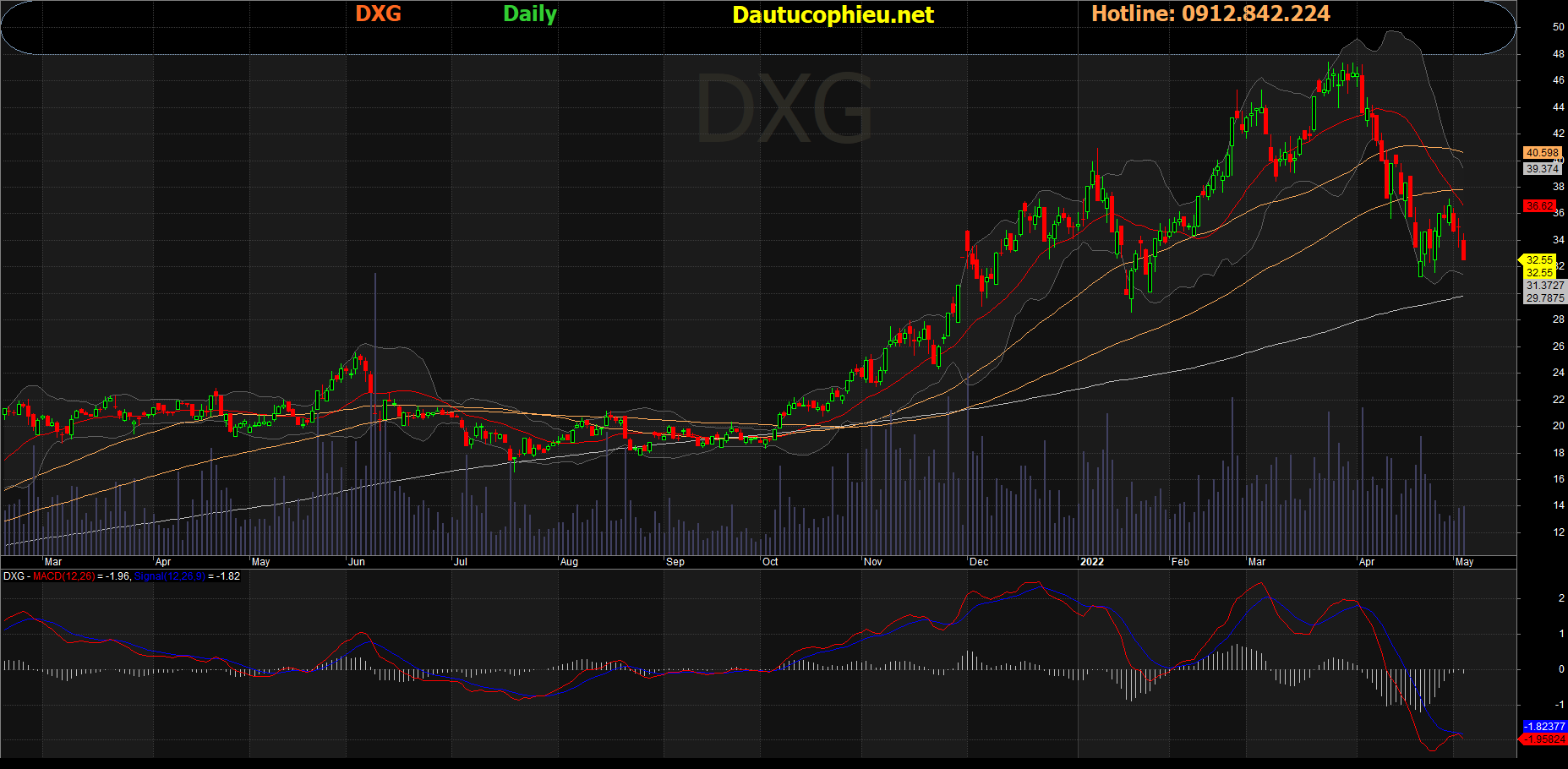 Đồ thị cổ phiếu DXG phiên giao dịch ngày 06/05/2022. Nguồn: AmiBroker