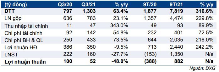 Bảng 1: KQKD Q3/2021, DXG