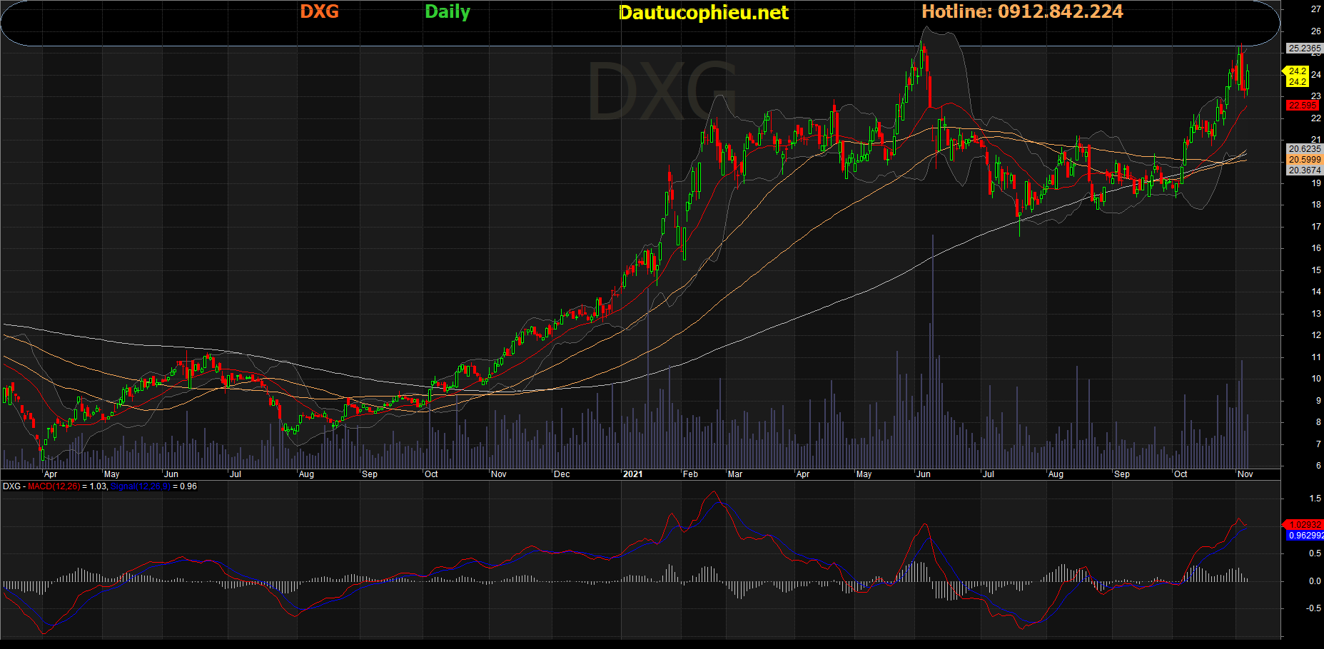 Đồ thị cổ phiếu DXG phiên giao dịch ngày 05/11/2021. Nguồn: AmiBroker