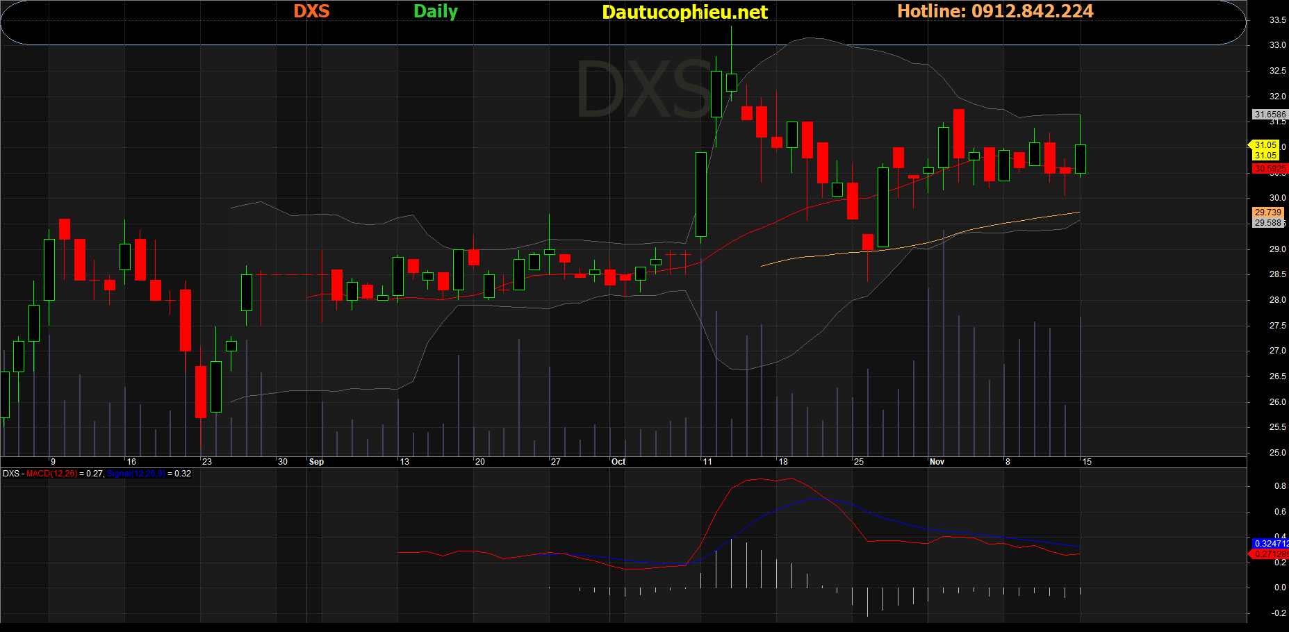 Đồ thị cổ phiếu DXS phiên giao dịch ngày 15/11/2021. Nguồn: AmiBroker