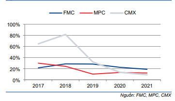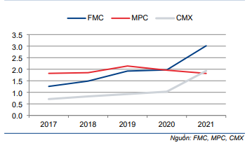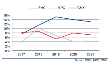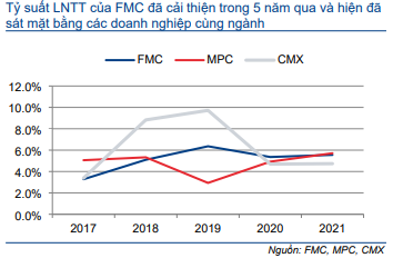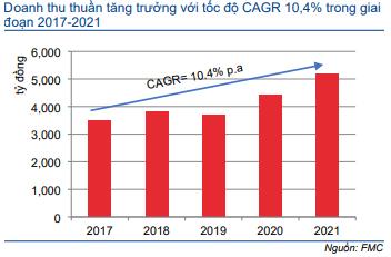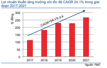 Tỷ suất lợi nhuận thuần của FMC đã tăng dần từ 3% vào năm 2017 lên trên 5% vào năm 2020-2021. Theo đó, lợi nhuận thuần đã tăng trưởng mạnh với tốc độ CAGR 24,1% trong giai đoạn 2017-2021.