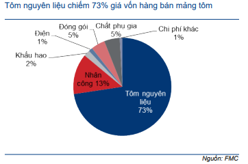 Cơ cấu chi phí: Tôm nguyên liệu chiếm 70% giá vốn hàng bán