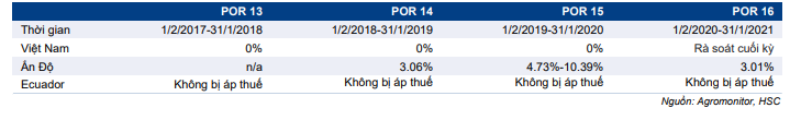 Bảng 8: Thuế chống bán phá giá vào thị trường Mỹ, Việt Nam so với Ấn Độ và Ecuador