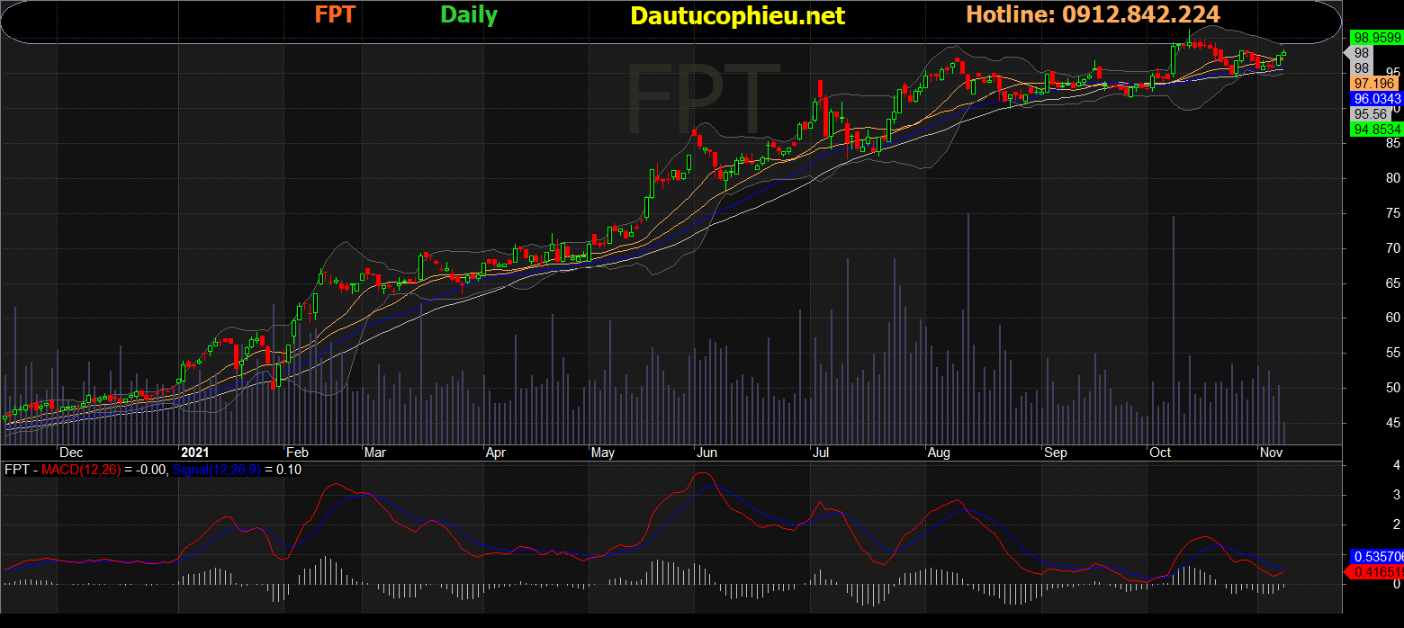 Đồ thị cổ phiếu FPT phiên giao dịch ngày 08/11/2021. Nguồn: AmiBroker