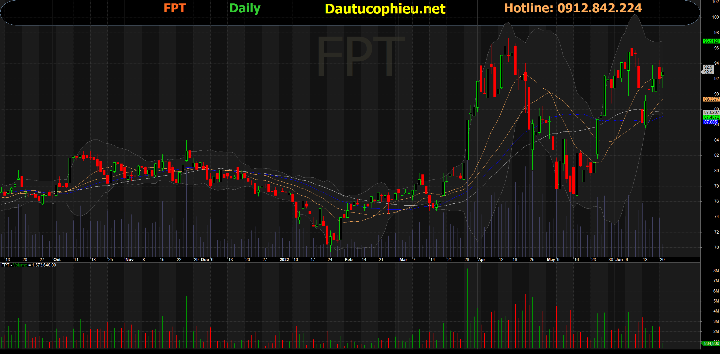 Đồ thị cổ phiếu FPT phiên giao dịch ngày 21/06/2022. Nguồn: AmiBroker