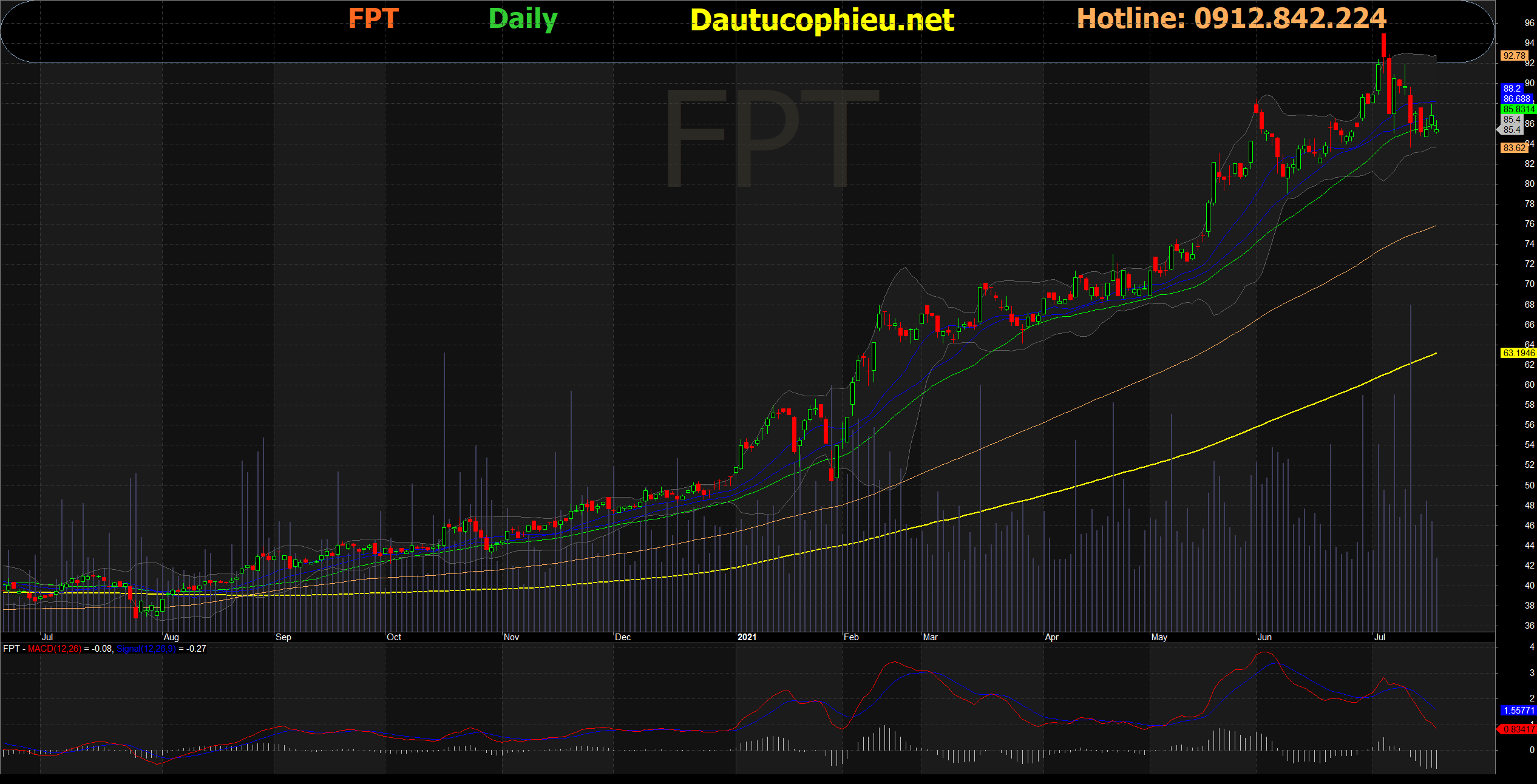 Đồ thị cổ phiếu FPT phiên giao dịch ngày 19/07/2021. Nguồn: AmiBroker