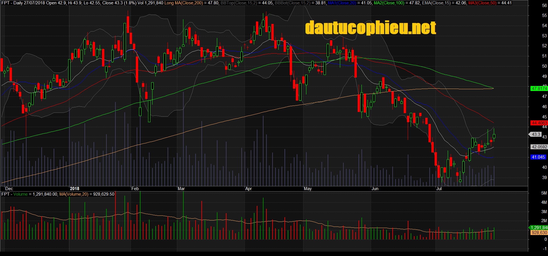 Đồ thị cổ phiếu FPT phiên giao dịch ngày 27/07/2018. Nguồn: AmiBroker