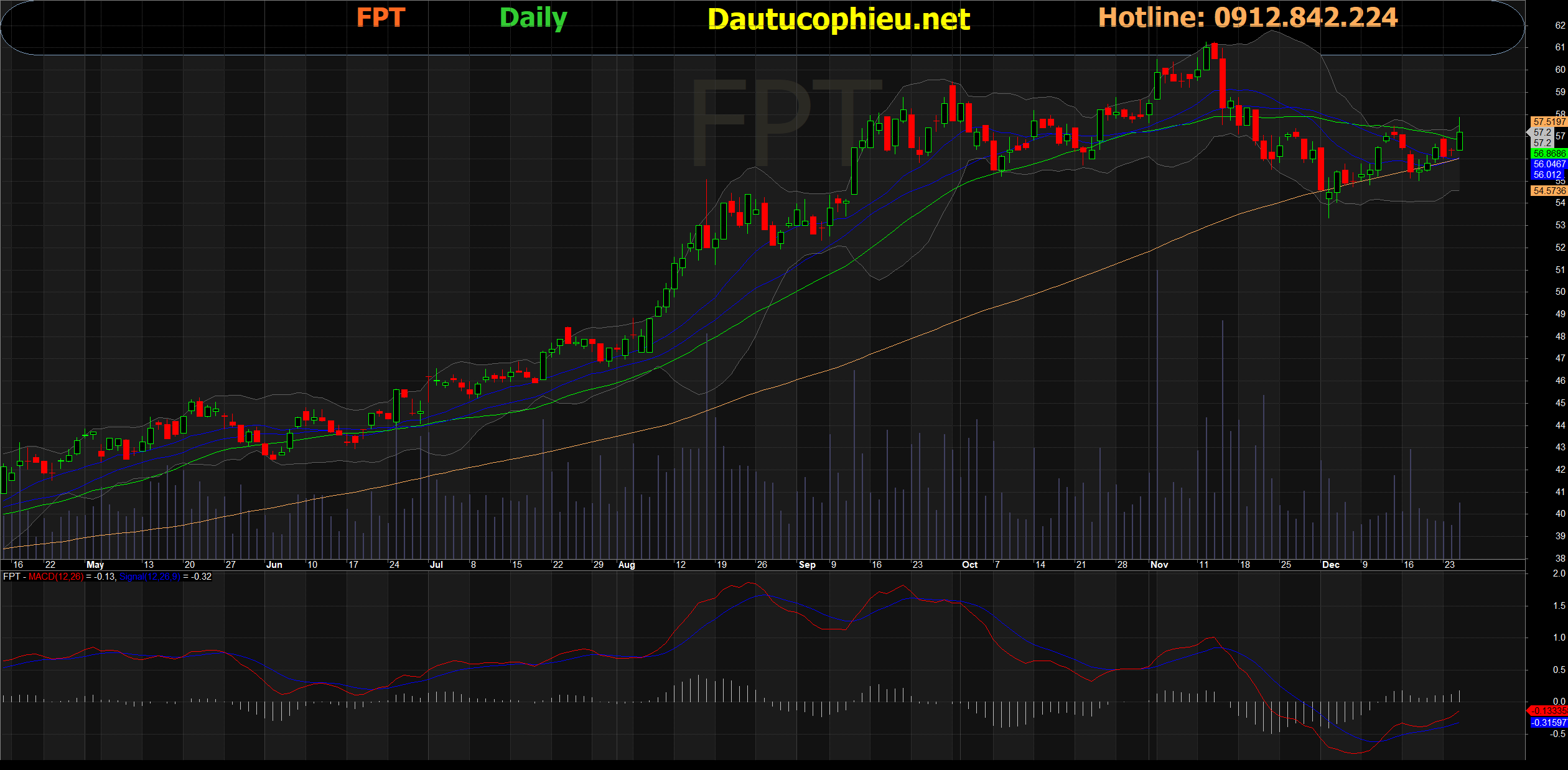 Đồ thị cổ phiếu FPT phiên giao dịch ngày 25/12/2019. Nguồn: AmiBroker.