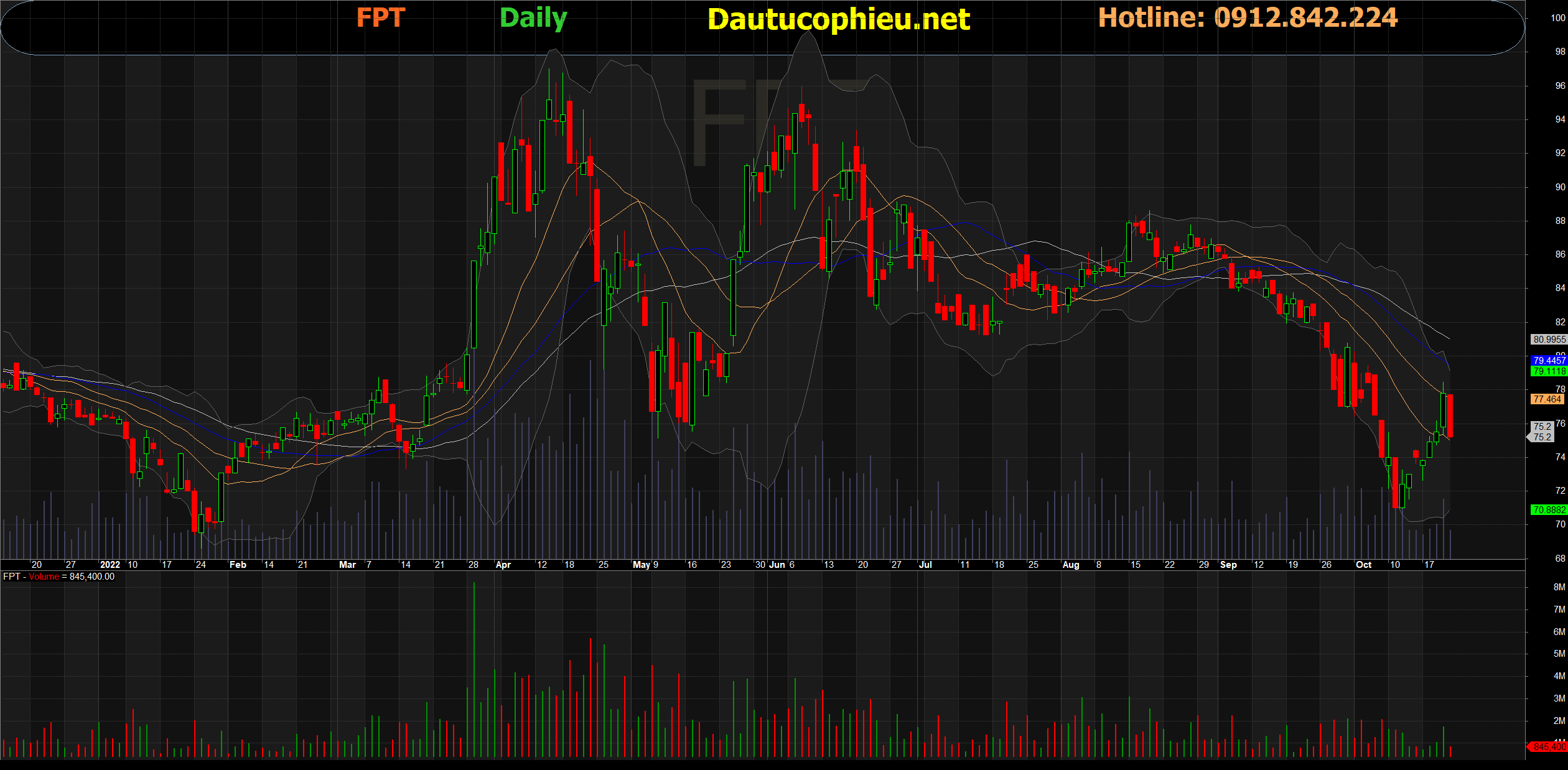 Đồ thị cổ phiếu FPT phiên giao dịch ngày 2110/2022. Nguồn: AmiBroker
