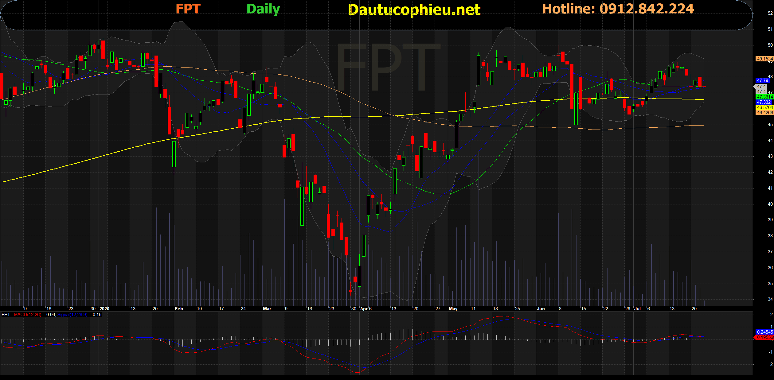 Đồ thị cổ phiếu FPT phiên giao dịch ngày 23/07/2020. Nguồn: AmiBroker