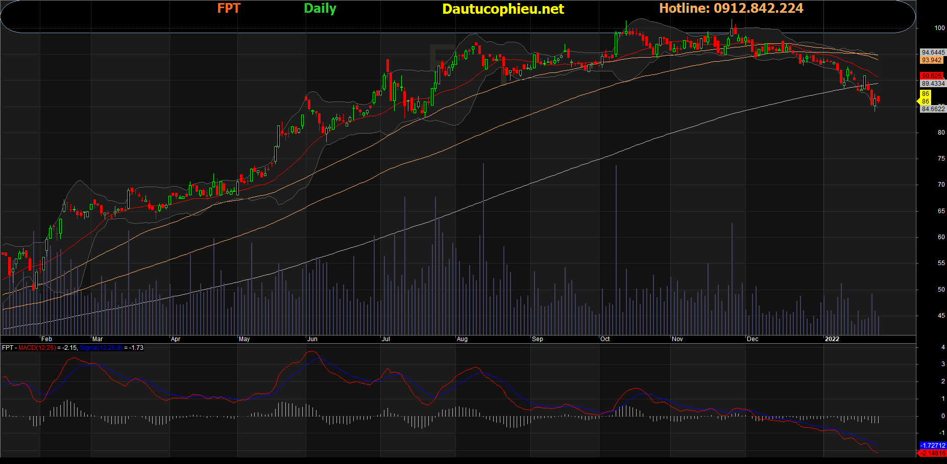 Đồ thị cổ phiếu FPT phiên giao dịch ngày 26/01/2022. Nguồn: AmiBroker